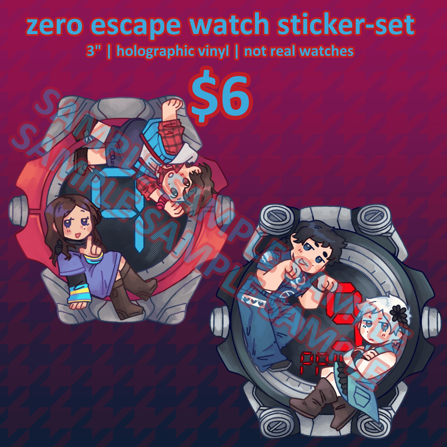 3 inch ~holographic~ stickers of your nonary buddies!